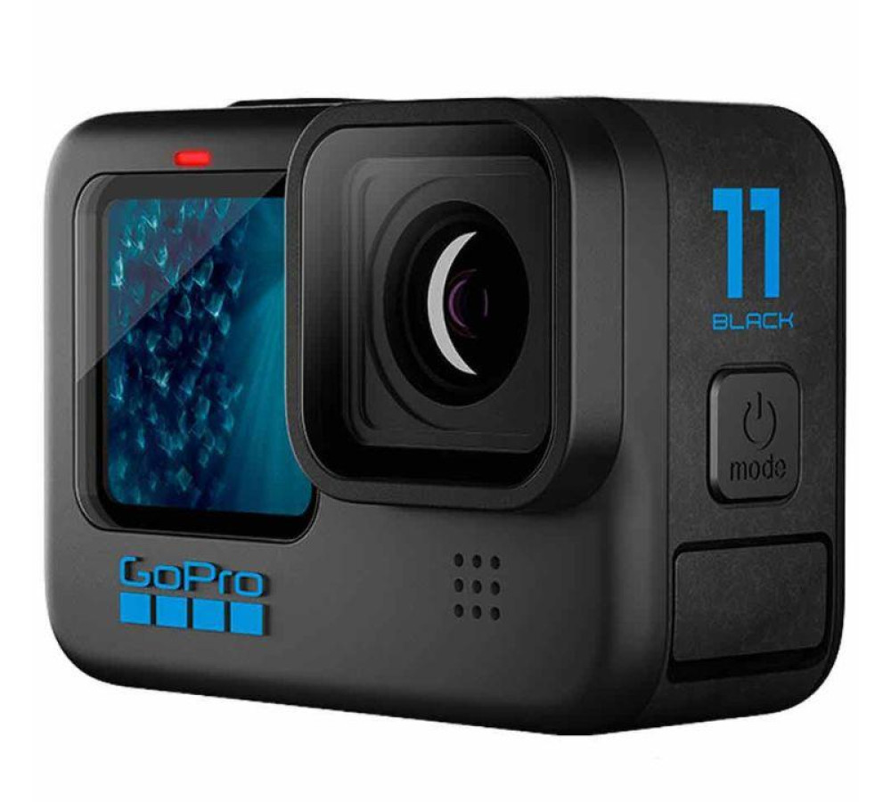 Inclui câmera HERO11 Black, estojo de transporte, bateria recarregável Enduro, suportes adesivos curvos, fivela de montagem + parafuso de ajuste manual e cabo USB-C*